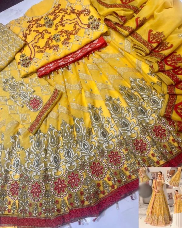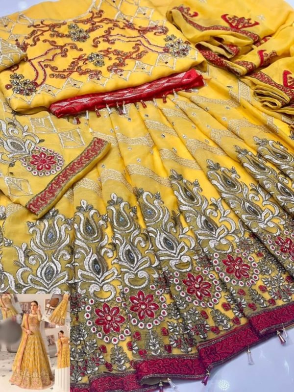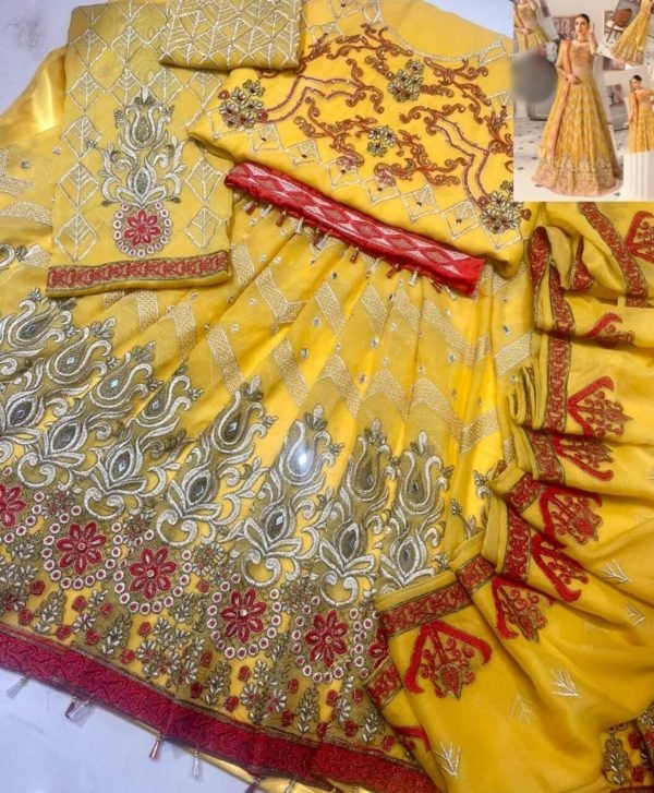 Fully Embroidered Chiffon Mirror work Front and Back